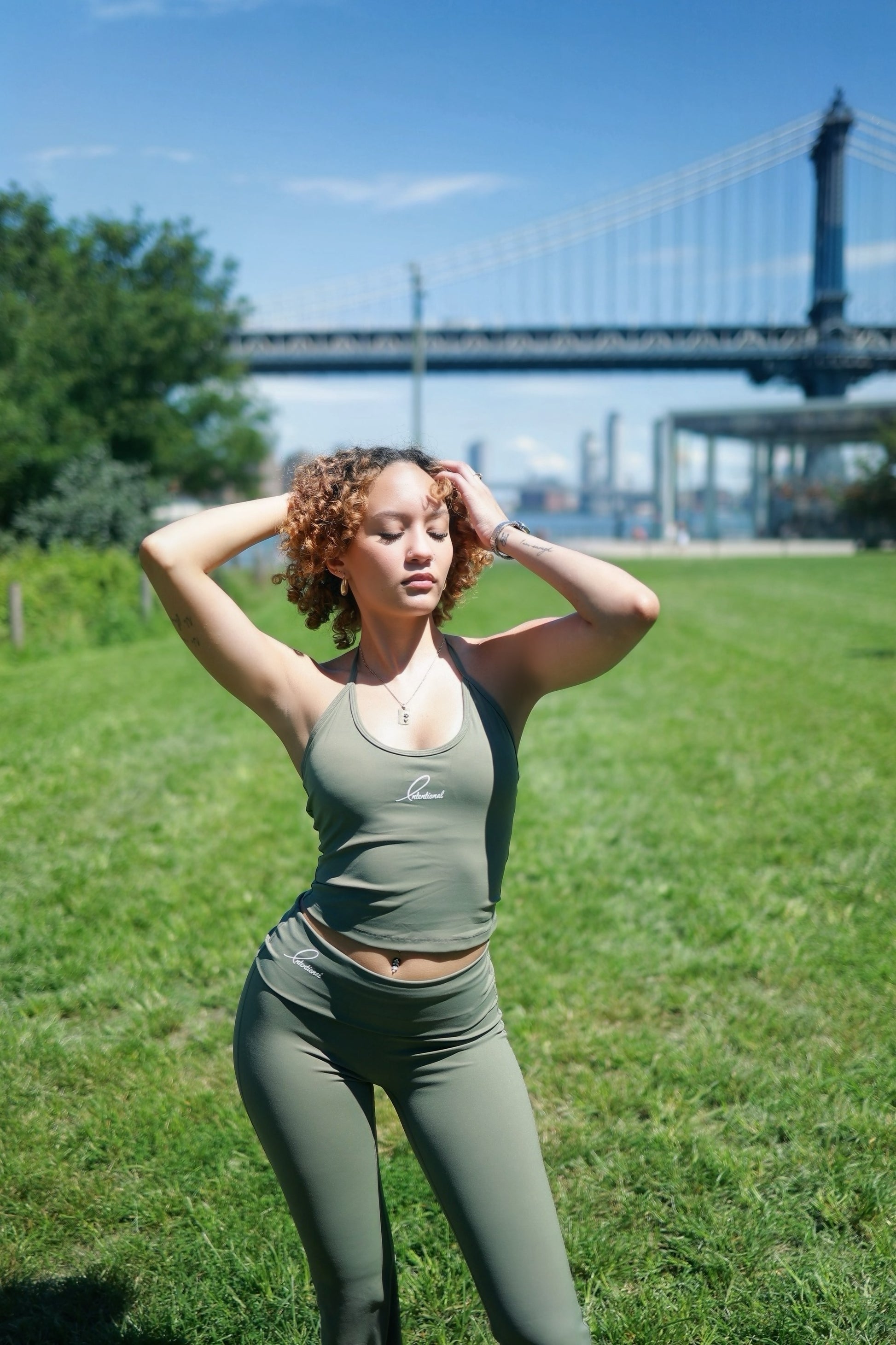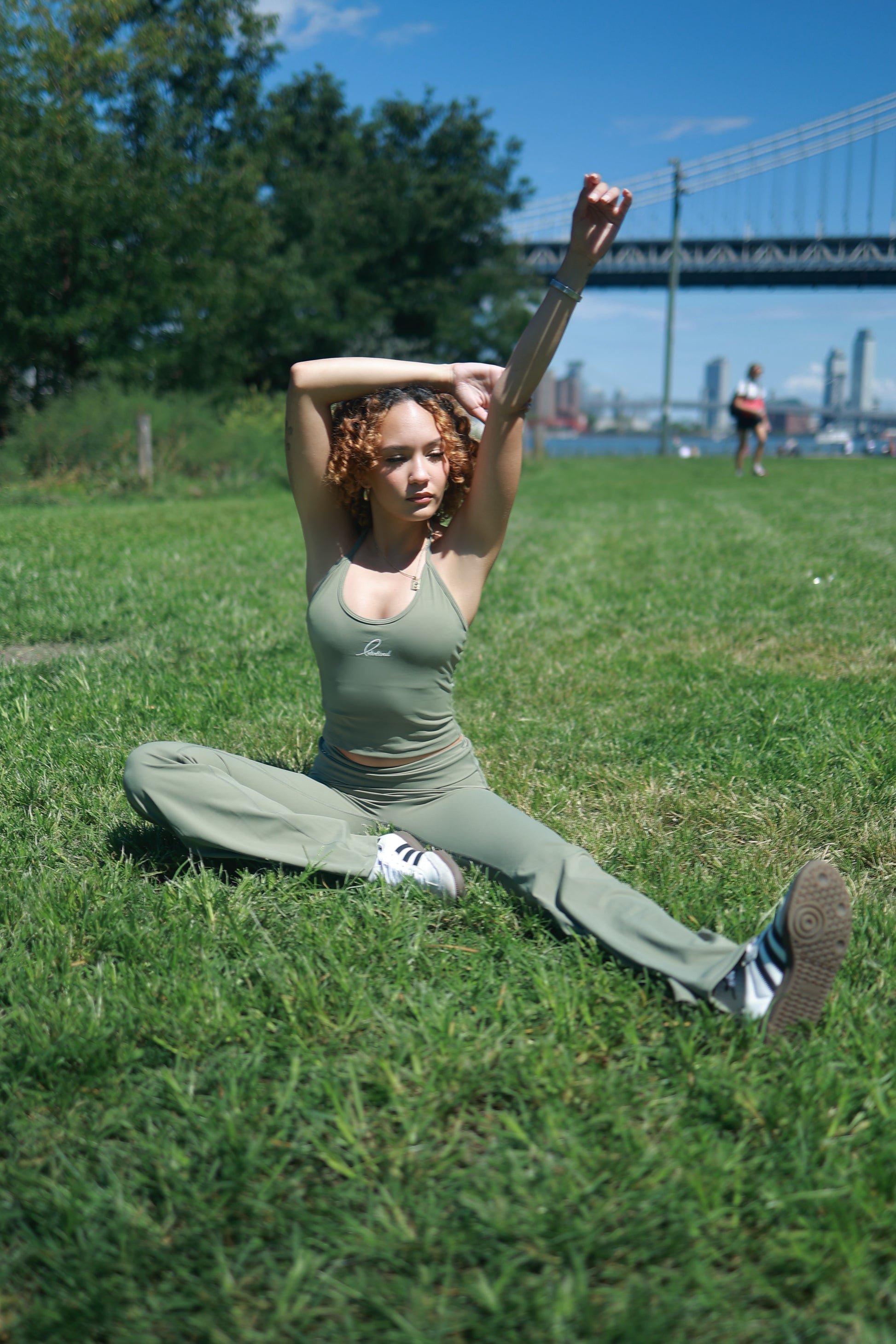 Our Evergreen Aura yoga set — featuring a sleek halter top and wide-leg yoga pants — is made for the woman blooming into her power. Fresh, bold, and endlessly balanced.