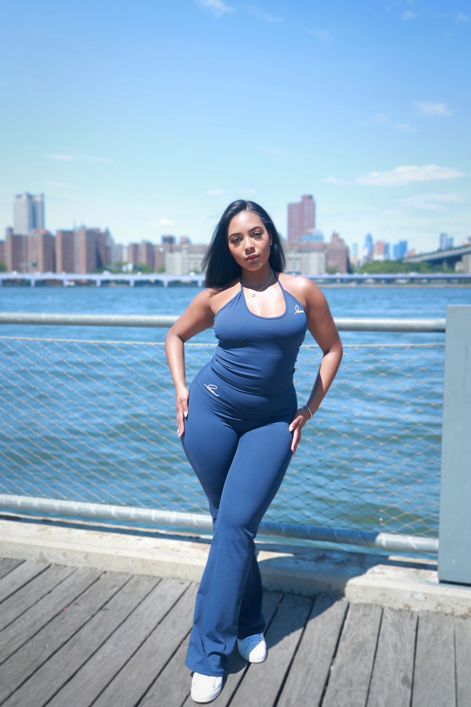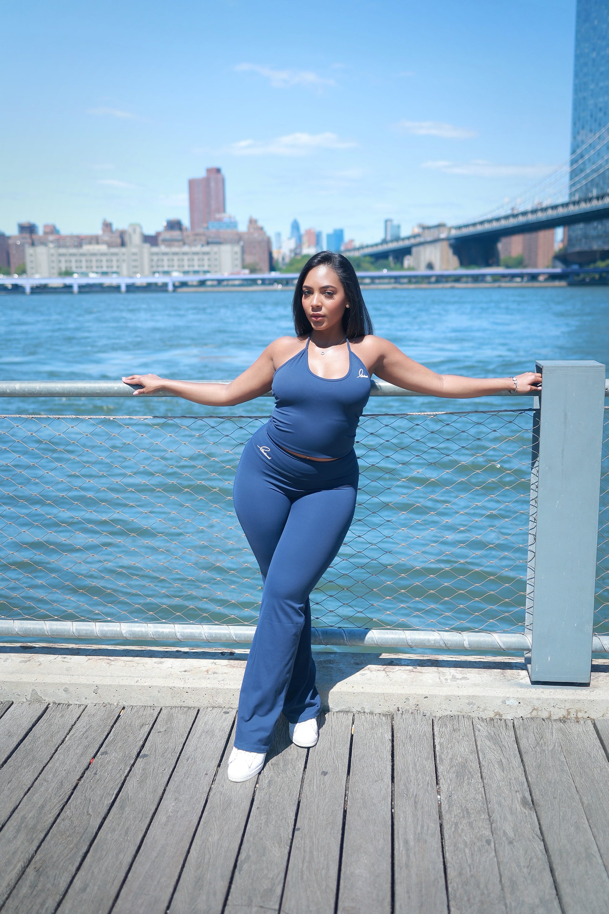 Step into focus with the Deep Devotion yoga set: a rich navy halter top paired with wide-leg yoga pants made to move with you. Designed for your most intentional moments.